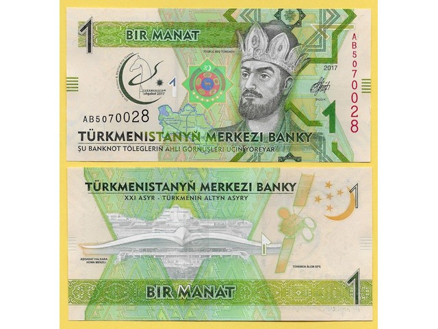 TURKMENISTAN 1 MANAT UNC # 1047